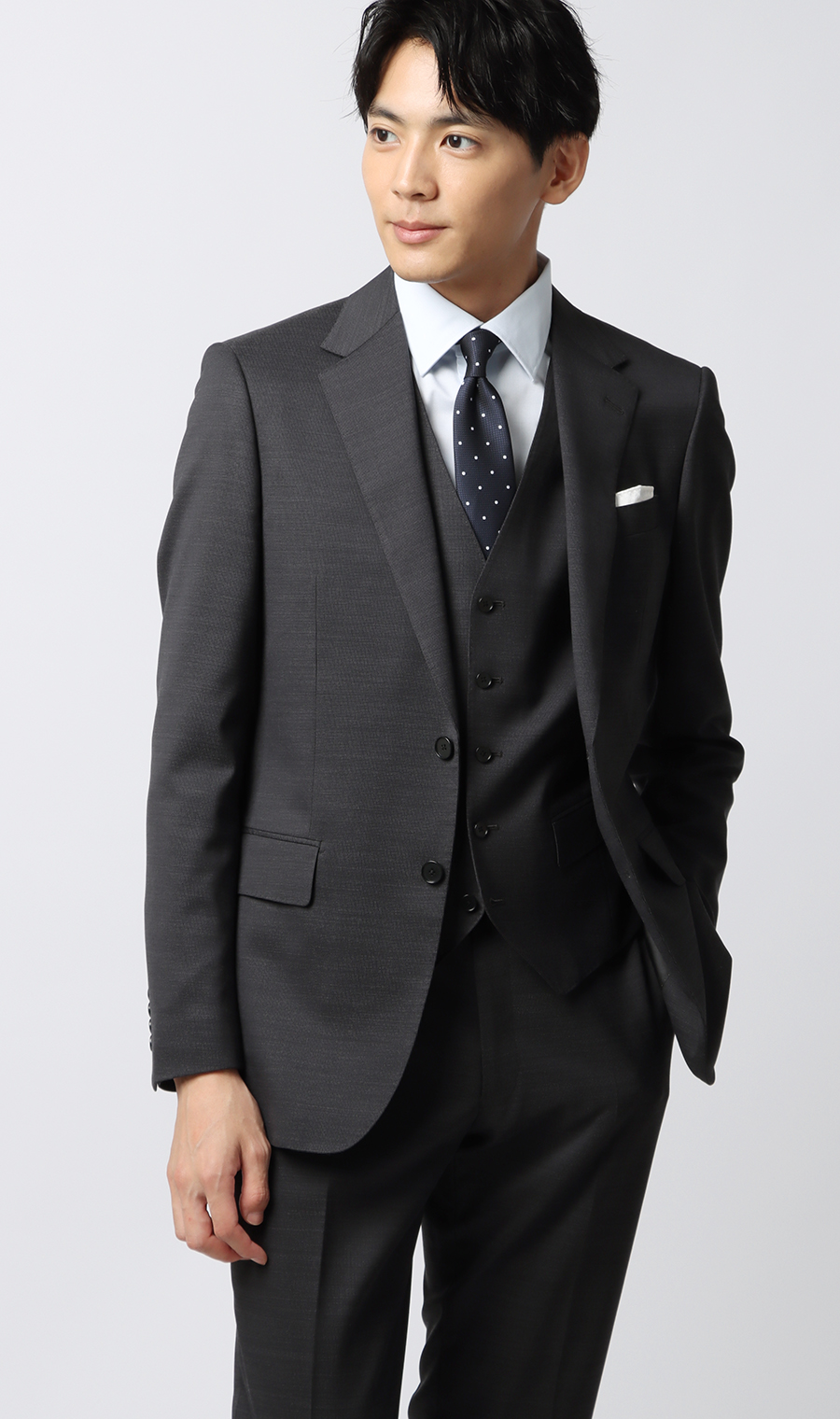 細身なシルエットに快適な着心地が叶うスタイリッシュなスリーピーススーツ