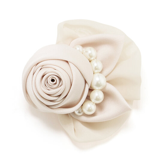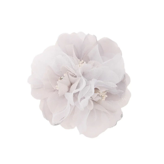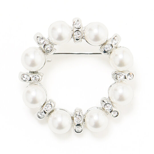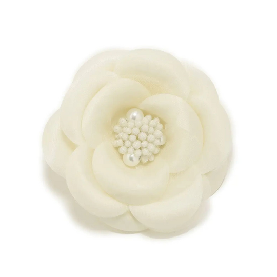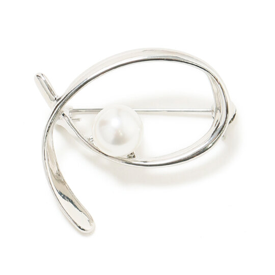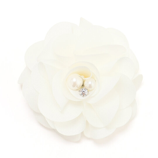 コサージュより控え目ながら、セレモニーにふさわしい上品な華やぎをプラスできるブローチ