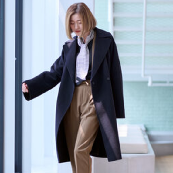 ウール・カシミヤ混の暖かさとリバー仕立ての軽さを直に感じられる着心地は、ストレスフリー。内側の配色をチラ見せして、真冬の着こなしに抜け感と奥行きをプラスして。