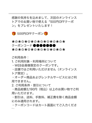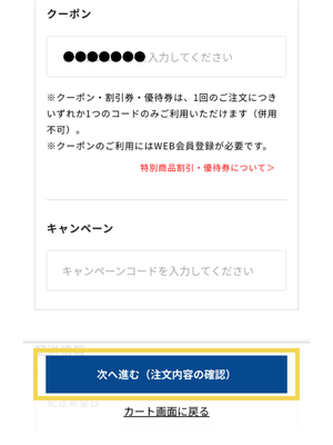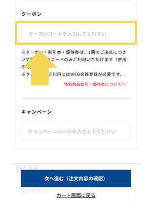 ・クーポンコードはメモやスクリーンショットなどで保存してください。