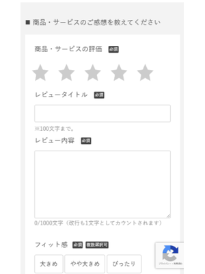 レビュー入力欄に遷移いたしますので、各項目の記載をお願いいたします。