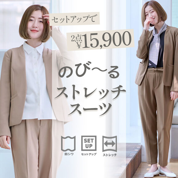 ハイストレッチで動きやすさ◎のび~るスーツ【上下セットで¥15,900】