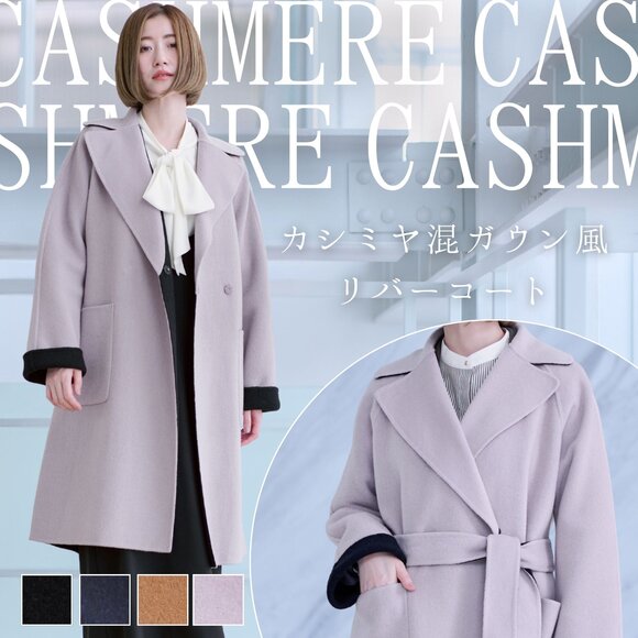 【4色展開】カシミヤの風合い、暖かさ、軽さを!カシミヤ混ガウン風リバーコート